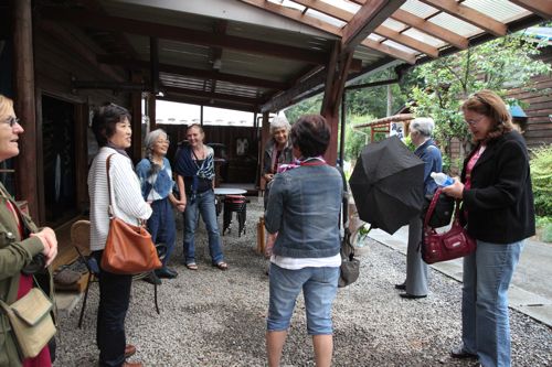 We poured out of the bus and Satou san and her helpers for the day were there to greet us-the rain hadn’t dampened our excitement one bit!