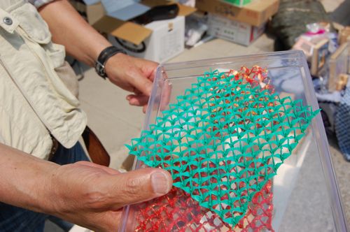 this fellow had folded these sheets of cranes from a single sheet of paper. different sizes had different numbers of cranes.